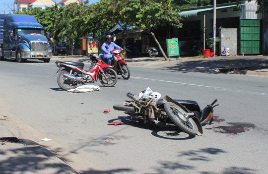 Xe máy của nạn nhân tại hiện trường - Ảnh: Người lao động |
