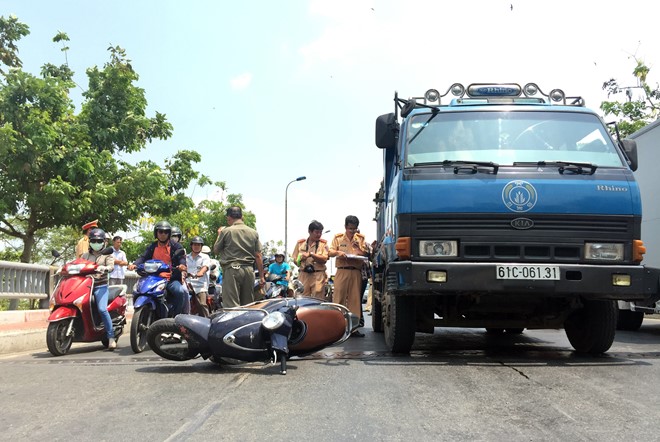 Khi đang đổ dốc cầu Bình Triệu (phường 26, quận Bình Thạnh), nữ sinh đã bị va chạm với một xe máy đi cùng chiều. Vụ tai nạn đã khiến nữ sinh N. ngã xuống đường, cùng lúc đó chiếc xe ben chở đất mang BKS: 61C-061.31 lưu thông lao tới không xử lý kịp đã cán qua khiến chân N. bị gãy.