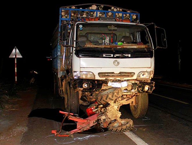 Vụ tai nạn làm 5 người chết, 9 người bị thương, chiếc xe công nông bị gãy đôi. Tại cơ quan công an, tài xế Trọng khai nhận do ngủ gật, chạy xe tốc độ cao nên gây tai nạn.