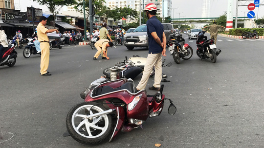 Tại hiện trường, 2 chiếc xe máy đều bị hư hỏng, nằm chắn ngang giao lộ nêu trên. Mặt đường cũng còn nhiều vết cà do 2 xe tông nhau rồi kéo lê nhiều mét.
