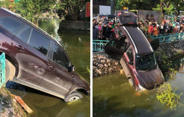 Sau đó, chiếc xe lao xuống hồ Trúc Bạch rồi cắm đầu xuống hồ. Ngay sau đó, người dân đã lại giúp đỡ. Theo một số người dân, lái xe có biểu hiện say rượu khi xe bị lao xuống hồ rồi vẫn một mực đòi nổ máy để lùi xe lên.