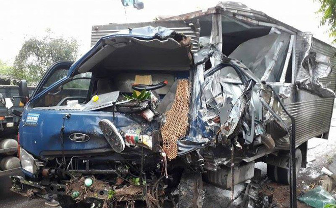 Cú va tông mạnh, xe ben nổ lốp còn phần đầu ô tô tải biến dạng, bẹp dúm, các mảnh vỡ vương vãi tứ tung dưới đường. Vụ tai nạn khiến tài xế xe tải tử vong tại chỗ.