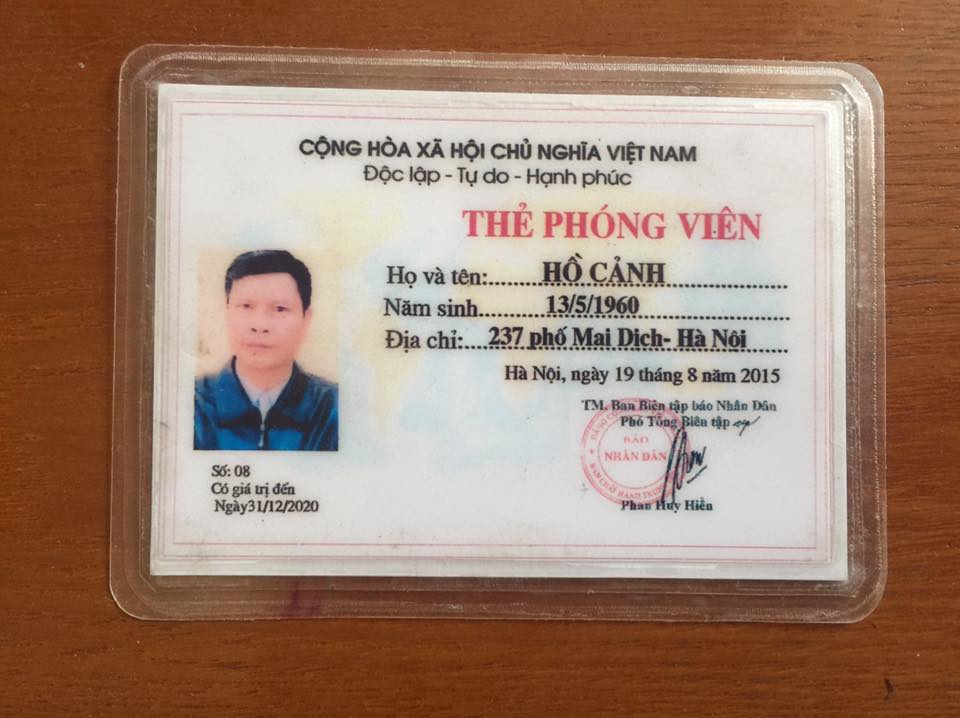 Lúc này, lái xe tự giới thiệu là Hồ Cảnh phóng viên báo Nhân Dân và đưa ra giấy giới thiệu, thẻ phóng viên thuộc báo Nhân Dân. Thấy đối tượng có nhiều biểu hiện nghi vấn, tổ công tác đã liên hệ đến báo Nhân Dân để xác minh thì được biết đối tượng này đã giả danh người của cơ quan báo.