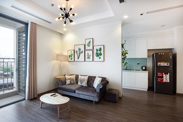 Không gian sáng, lối bài trí hiện đai, thanh lịch, phòng khách có view thoáng, liên kết tốt với bên ngoài đang hối hả.