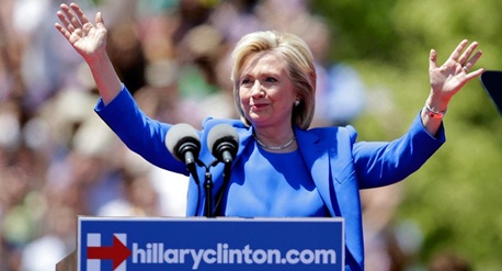 | Bà Hillary Clinton phát biểu tại đảo Roosevelt, New York trong chiến dịch tranh cử tổng thống. Ảnh: NBC |