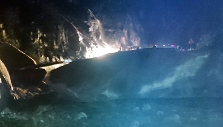 Cơ quan chức năng đã huy động lực lượng, phương tiện đến vị trí xảy ra sự cố để khắc phục, do đêm tối nên chưa thể xác định được khối lượng tảng đá khổng lồ trên.