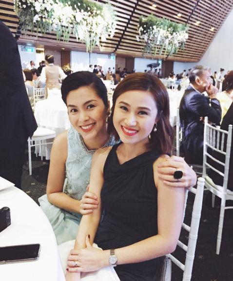 | Lần đầu tiên Hà Tăng lộ bụng bầu trong đám cưới chị chồng tại Philippines. Ảnh internet |