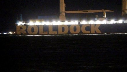Tàu Rolldock Star hiện neo đậu tại vị trí phía trước Mũi Hời, vùng nước giáp ranh giữa cảng dân sự và quân cảng Cam Ranh.