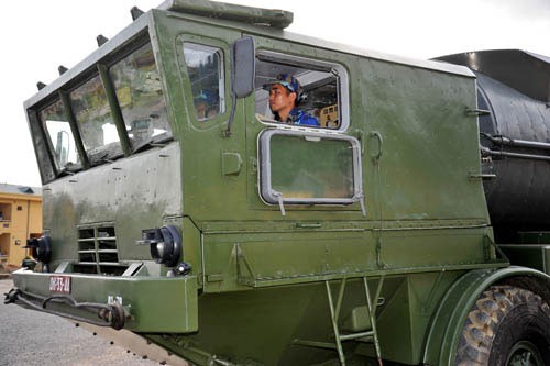 Xe bệ phóng tên lửa vào vị trí thực hành nạp đạn.