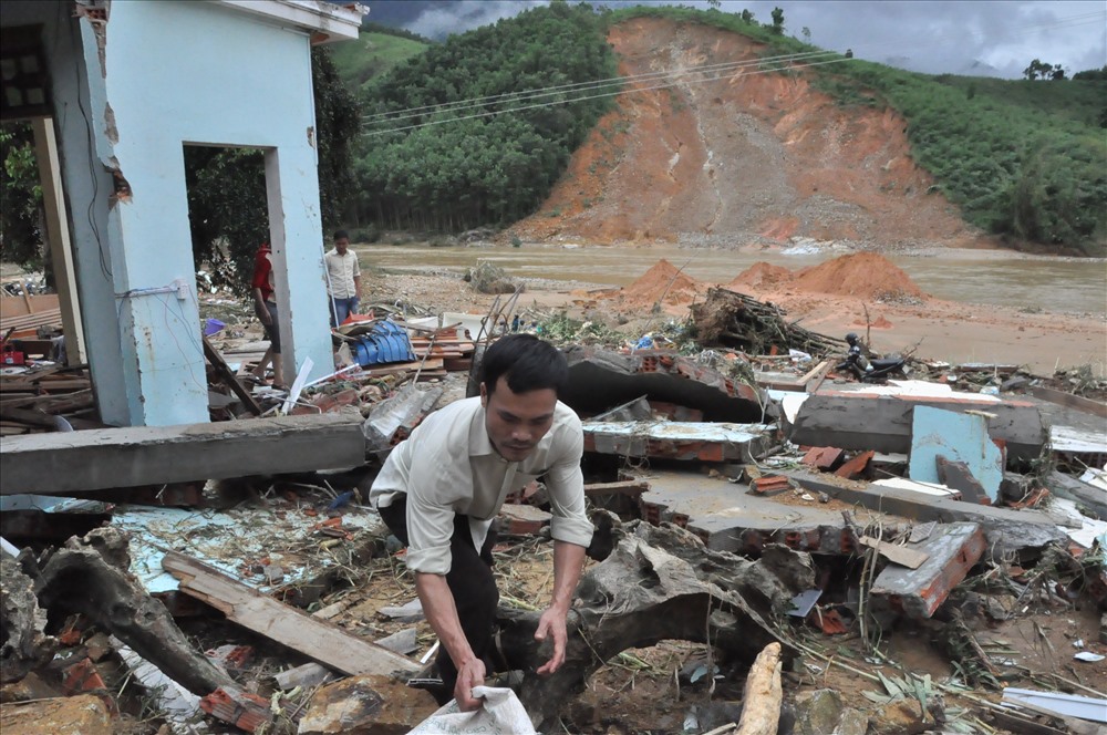 Vụ việc xảy ra tại xã Trà Giang, huyện Bắc Trà My, Quảng Nam hôm 5/11. Sự cố đã làm 4 ngôi nhà của 3 cha con gồm Ngô Văn Tiên, Ngô Văn Mẫn và cha là Ngô Văn Thông đều bị lũ cuốn sạch, không còn dấu tích. Căn nhà bên kia đường của bà Lê Thị Nga chỉ còn trơ 3 bức vách. 4 người thoát nạn đều bị thương, trong đó 2 người bị thương rất nặng đang điều trị tích cực tại bệnh viện Tam Kỳ. Một người khác vẫn còn tình trạng mất tích.
