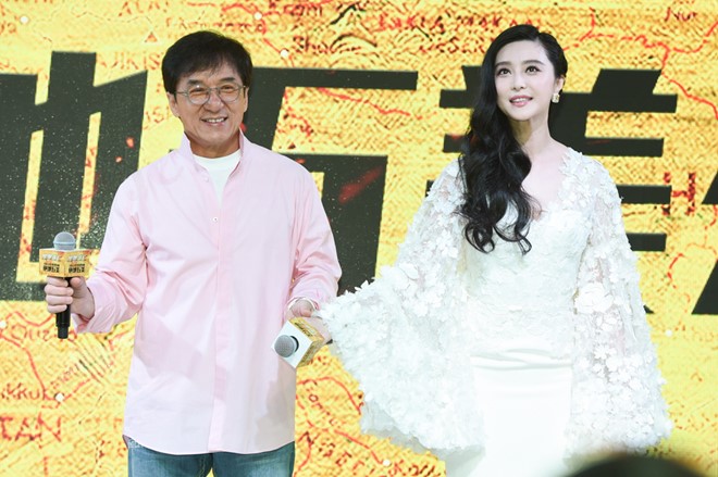 | Ngày 10/6, Phạm Băng Băng và Thành Long xuất hiện tại buổi họp báo quảng bá cho bộ phim mới "Tuyệt địa đào vong" ở Thượng Hải. Trước ống kính, nàng Hoa đán xuất hiện với bộ váy trắng thiết kế cầu kỳ trong khi Thành Long lại giản dị với quần jeans và áo sơ mi. |