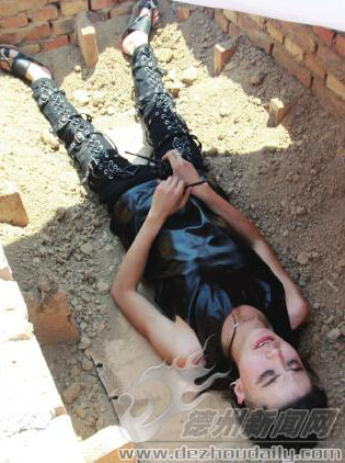 Một thanh niên ở Đức Châu, tỉnh Sơn Đông, Trung Quốc đã tự nguyện nằm dưới mộ trong khoảng 10 phút để trải nghiệm cảm giác chết.