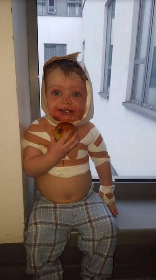 Câu chuyện xảy ra khi cậu bé Jace (khi đó 17 tháng tuổi), con trai chị Tarnya Hillary, sống tại Prudhoe, Northumberland, Anh, đã bị bỏng vào tháng 1/2016. Khi đó, cậu bé đang cầm cây chổi trên tay và đã vô tình làm đổ ly trà nóng lên cơ thể mình.