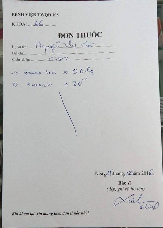 Đơn thuốc của chị Hà. Ảnh: FB |