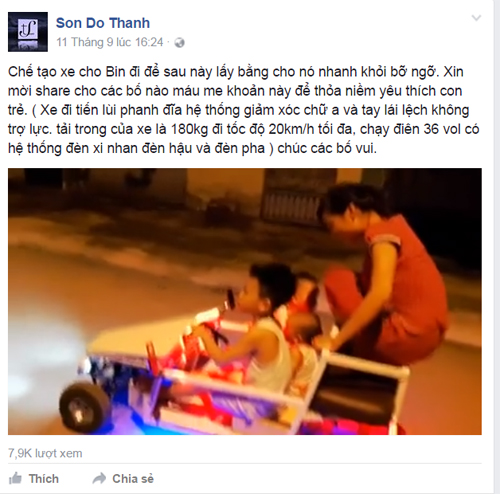 Ngay sau khi chia sẻ trên mạng xã hội, sản phẩm đầy yêu thương của ông bố Thanh Hòa này đã nhận được nhiều sự yêu mến nể phục của Cộng đồng mạng. Nhiều người cho rằng đây mới là cao thủ cơ khí thật sự.