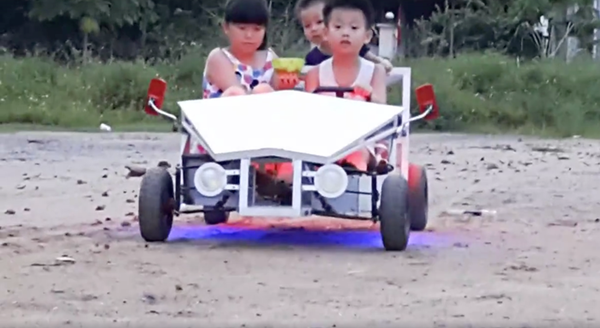 Xe vận hành bình thường khi có cả người lớn ngồi trên. Ảnh: FBNV |