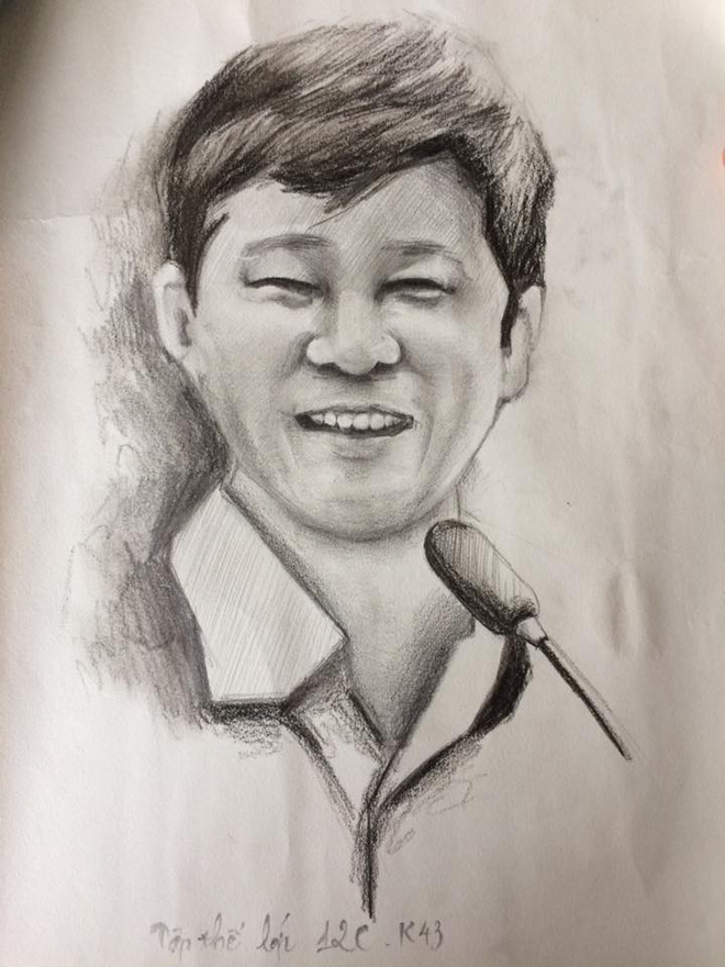 | Chân dung thầy Khánh được các em học sinh phác họa lại. |