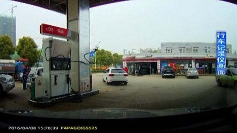 Đoạn video ghi lại cảnh một tài xế Trung Quốc gần như gây ra tai nạn nghiêm trọng khi cố lái xe rời khỏi trạm xăng trong khi vòi bơm vẫn gắn với xe anh ta.