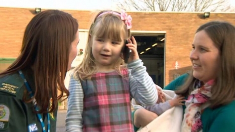 Một bé gái 3 tuổi đã gọi số điện thoại khẩn cấp 999 để giúp người mẹ đang mang thai bị ngã cầu thang.