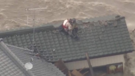 Video: Người dân Nhật đứng trên nóc nhà, chờ trực thăng cứu khỏi lũ dữ