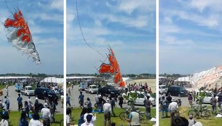 Video: Diều khổng lồ nặng 700 kg rơi xuống đám đông ở Nhật