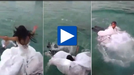 Video: Cô dâu suýt chết đuối vì váy cưới