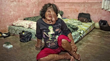 Người phụ nữ biến dạng vì khối u phải đi ăn xin kiếm sống
