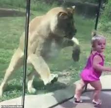 Clip bé gái khóc thét khi bị sư tử vồ qua cửa kính