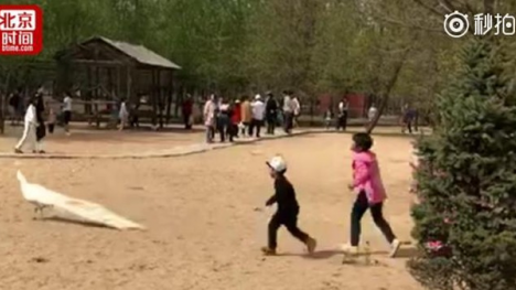 Trung Quốc: Bố mẹ thản nhiên nhìn con đuổi bắt, vặt lông chim công trong vườn thú