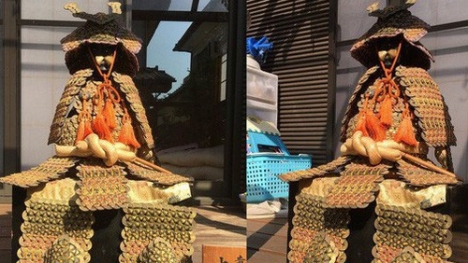Bộ giáp samurai này được làm từ 1750 đồng xu, tác giả là một cậu bé tiểu học