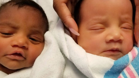 Một bé có làn da trắng trong khi một bé sở hữu làn da đen khác biệt hoàn toàn, không ai có thể tin được đây lại là hai chị em sinh đôi.