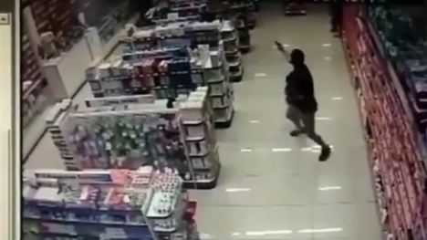 Cảnh sát Brazil vừa bế con vừa bắn gục hai tên cướp