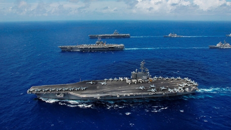 Ba tàu sân bay Mỹ USS Carl Vinson, USS Ronald Reagan và USS Nimitz có tổng lượng choán nước hơn 300.000 tấn và có thể mang theo gần 300 máy bay các loại đang áp sát bán đảo Triều Tiên.