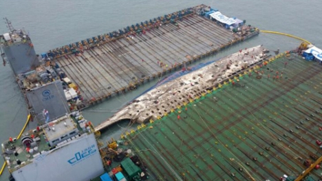 Lực lượng cứu hộ Hàn Quốc đã hoàn tất việc trục vớt phà Sewol, đưa nó lên tàu chuyên chở, bắt đầu hành trình cuối cùng đến cảng Mokpo để phục vụ công tác điều tra.