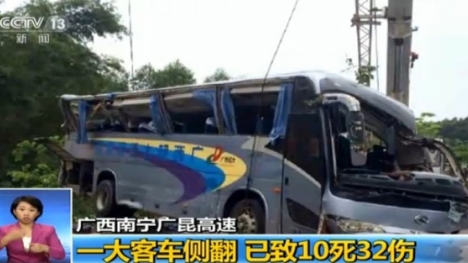 Một vụ tai nạn giao thông đường bộ nghiêm trọng đã xảy ra khi một chiếc xe buýt bị lật ngược tại miền Nam Trung Quốc.