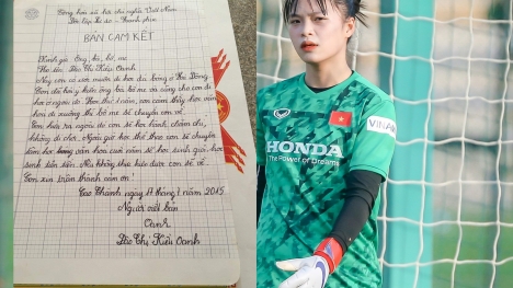 Thủ thành Đào Thị Kiều Oanh đang cùng ĐT nữ Việt Nam dự World Cup 2023 từng gửi bản cam kết đến bố mẹ xin đi học đá bóng.