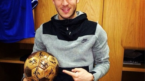 (Tinmoi.vn) Với những gì đã thể hiện năm 2013, Eden Hazard đã được các đồng đội ở Chelsea trao tặng Quả bóng gỗ mạ vàng có rất nhiều chữ ký.