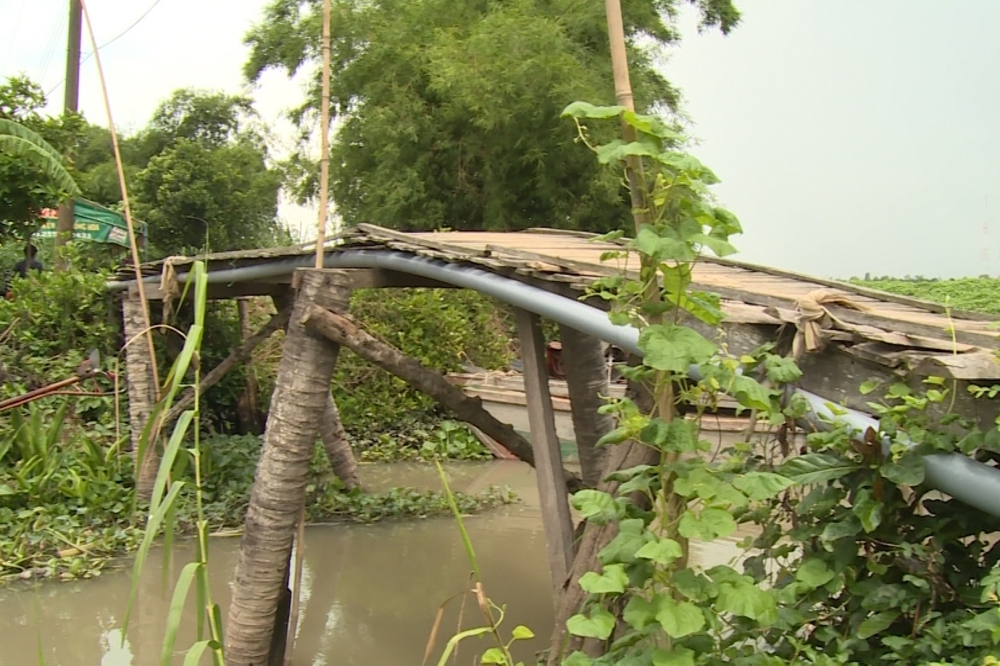 | Để đến được khu vực sinh sống của nhiều người dân, Thùy Trang phải di chuyển bằng những chiếc xuống nhỏ và những cây cầu gỗ mục nát. |