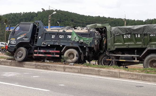 Khi đi qua địa bàn xã Nghi Yên, chiếc xe ben bất ngờ đâm mạnh vào đuôi xe ben khác mang BKS: 37C-217.96 (chưa rõ danh tính tài xế) đang dừng trên đường do gặp sự cố về lốp.