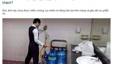(Tinmoi.vn) Bức ảnh một thanh niên được cho là nhân viên phục vụ ở sân bay T.S.Nh đang bơm nước từ vòi trong...toilet vào những bình nước uống tinh khiết được đăng tải đang gây "bão" cộng đồng mạng.