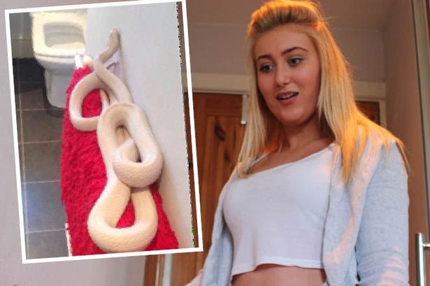Thiếu nữ trẻ đã vô cùng hoảng sợ khi phát hiện ra con rắn khủng màu trắng trong phòng tắm của mình.