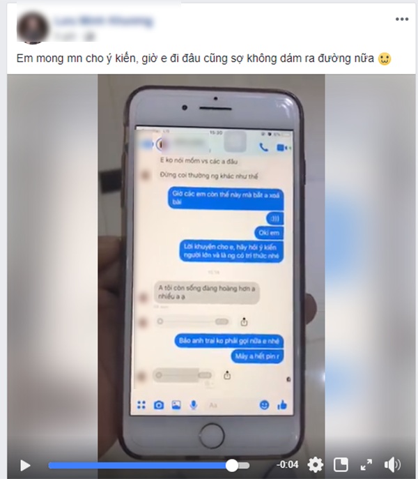 Sau đấy, nhiếp ảnh Minh Khương – người đã công khai toàn bộ vụ việc và ngỏ lời 'kêu cứu' dân mạng tiếp tục cập nhật thông tin liên quan. Trên trang cá nhân của mình, nhiếp ảnh này cho biết anh vừa nhận được hàng loạt tin nhắn thoại với lời lẽ khó nghe từ tài khoản Facebook có tên C.L (một thành viên trong lớp mà anh nhận chụp kỉ yếu).