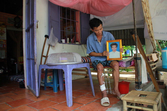 Ông Yêng Hồng Mỹ (50 tuổi) và bức ảnh thờ được gia đình đem xuống sau 5 năm làm giỗ. Ảnh: Thanh Niên |
