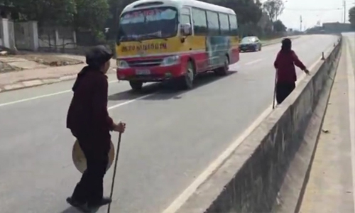 Mới đây, cư dân mạng truyền tay nhau clip ngắn ghi lại khoảnh khắc các cụ bà chống gậy trèo qua dải phân cách trên quốc lộ 1A ở Hà Tĩnh.