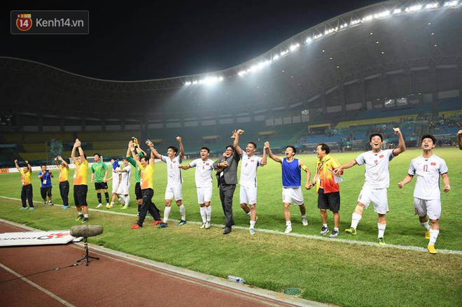 Sau khi trận đấu kết thúc, thầy trò HLV Park Hang Seo đã cùng nhau tiến tới khán đài để cảm ơn hàng ngàn CĐV Việt Nam đã không quản ngại khoảng cách địa lý mà sang Indonesia cổ vũ cho Olympic Việt Nam.