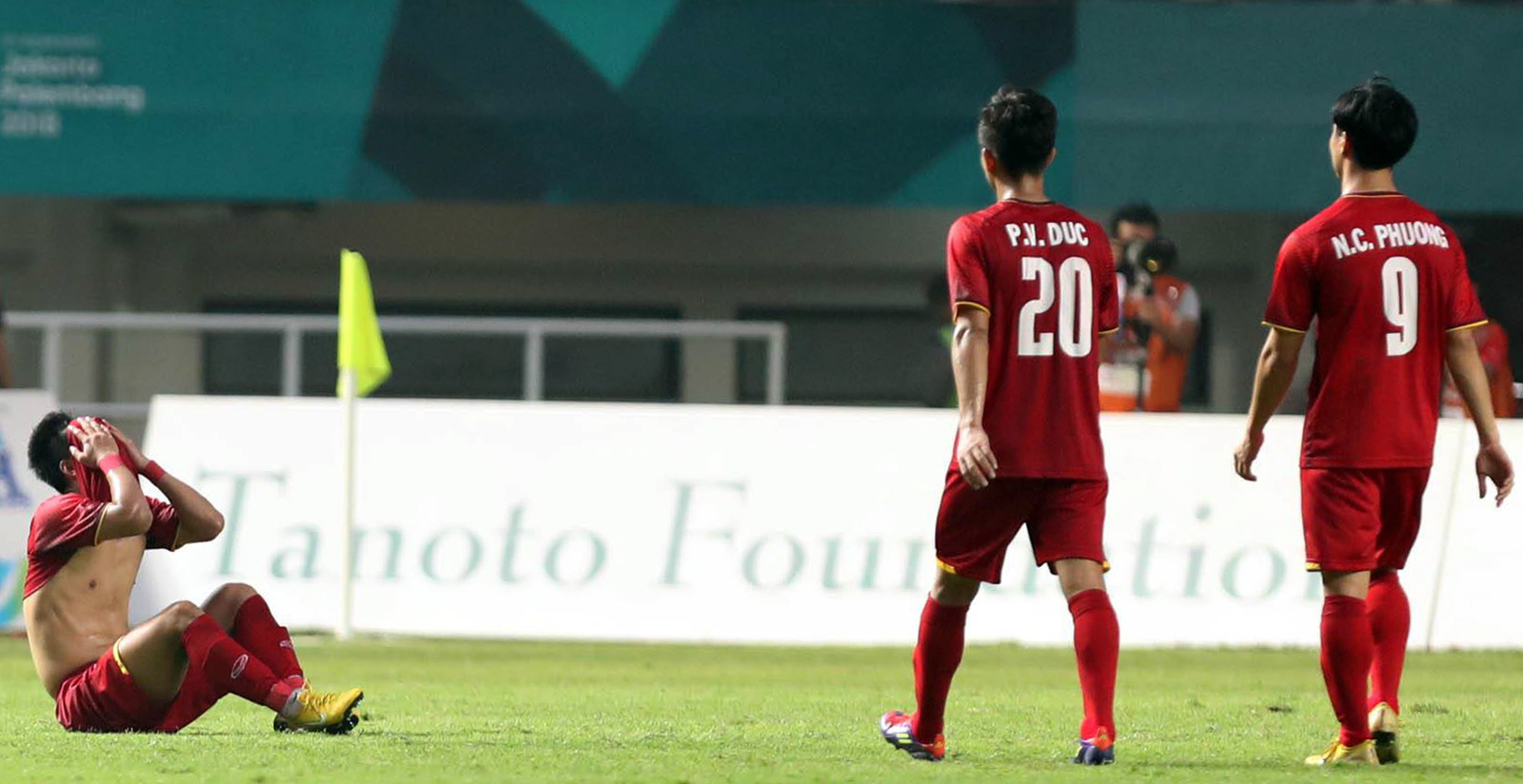 Trong lịch sử bóng đá Việt Nam từ khi hội nhập trở lại, đây là lần đầu tiên Olympic Việt Nam giành quyền vào bán kết Asiad. Thậm chí, tính đến trước trận đấu này, Đình Trọng (phải) và các đồng đội ở hàng thủ đã thi đấu chắc chắn, giúp đội nhà giữ sạch lưới suốt năm trận.