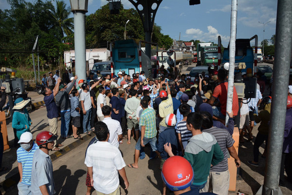 Một số lái xe dừng đậu trên các làn thu phí của trạm BOT Biên Hòa nhiều giờ khiến QL1 kẹt cứng trong ngày 5/10. |