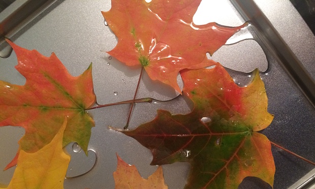 Những chiếc lá được bảo quản trong hỗn hợp glycerin và nước trong vòng 3 ngày trước khi được làm khô. Ảnh nguồn: The Guardian |