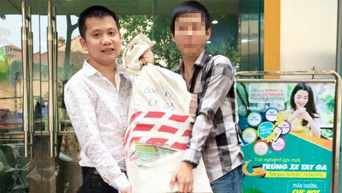 Hình ảnh Trọng Hiếu trao cả bao tải tiền cho người chủ sim khiến dân mạng xôn xao. |