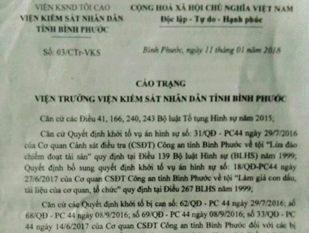 Hiện phía VKSND tỉnh Bình Phước đang củng cố hồ sơ chuyển đến TAND đồng cấp, định ngày xét xử.